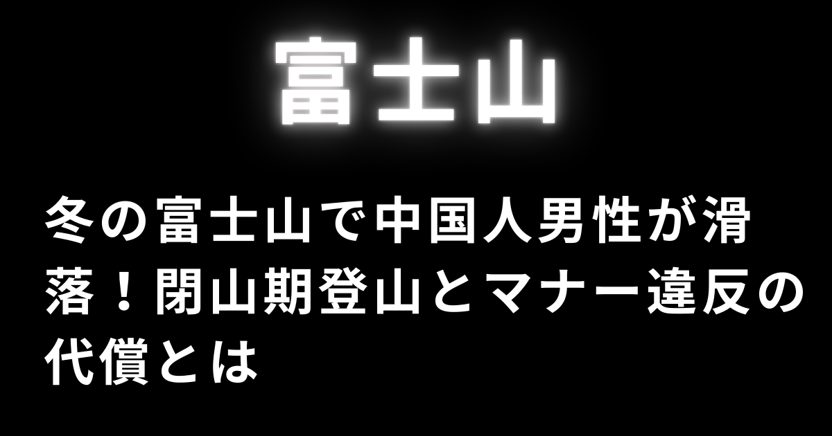問題は、事故が起きたのが富士山の閉山期間中だったという点です。この時期は積雪や天候の急変により遭難リスクが高く、一般登山者の立ち入りは制限されています。