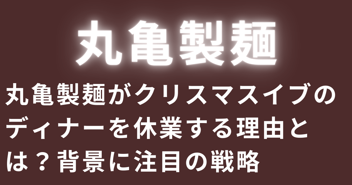 讃岐うどん専門店「丸亀製麺」が、2024年12月24日、クリスマスイブ当日のディナー営業を全国の店舗で休業することを発表しました。この発表は多くの利用者にとって驚きとともに注目を集めており、年末の繁忙期にもかかわらずあえて店舗を閉めるという選択に、関心が集まっています。